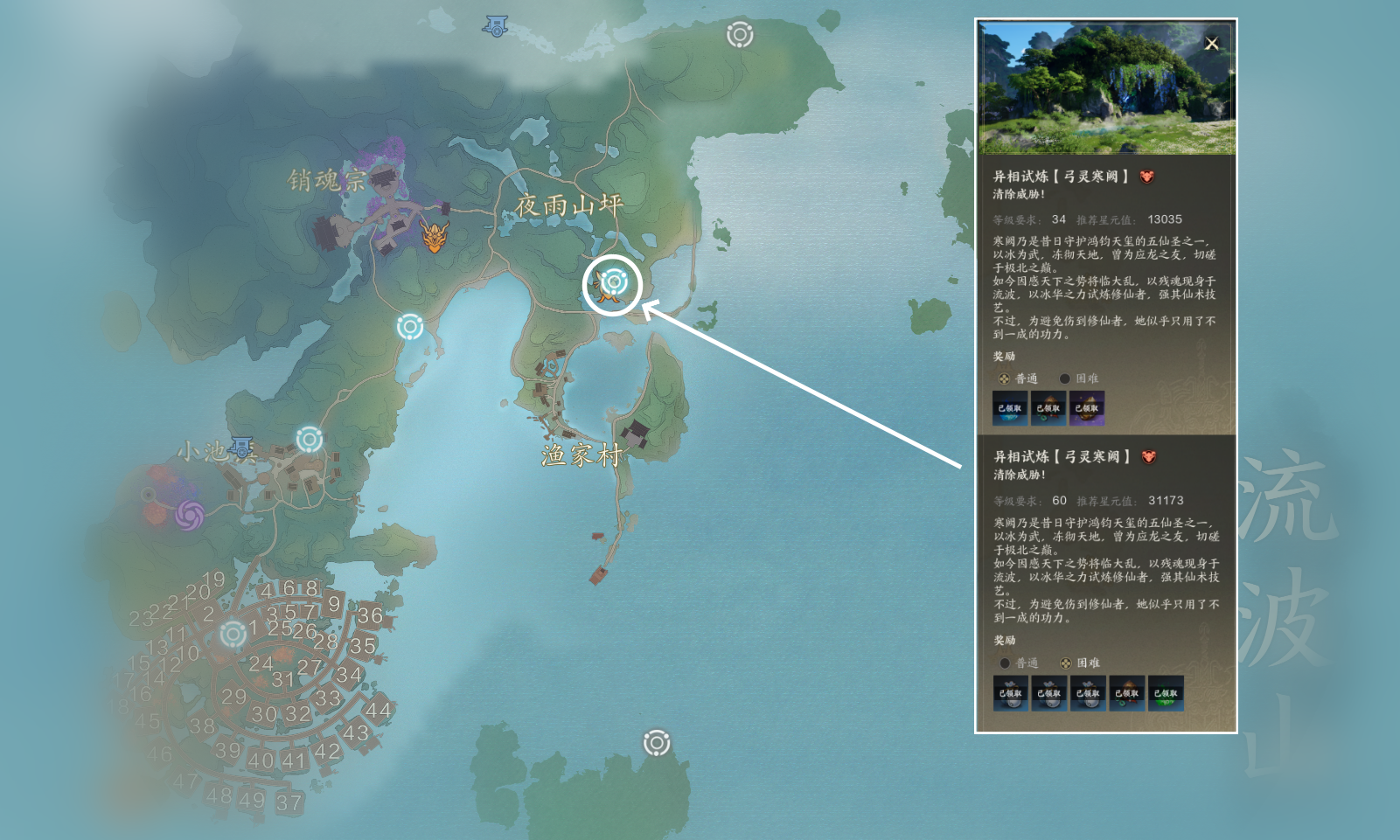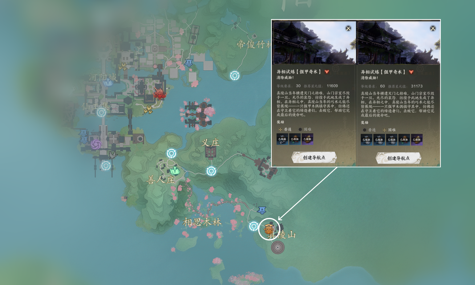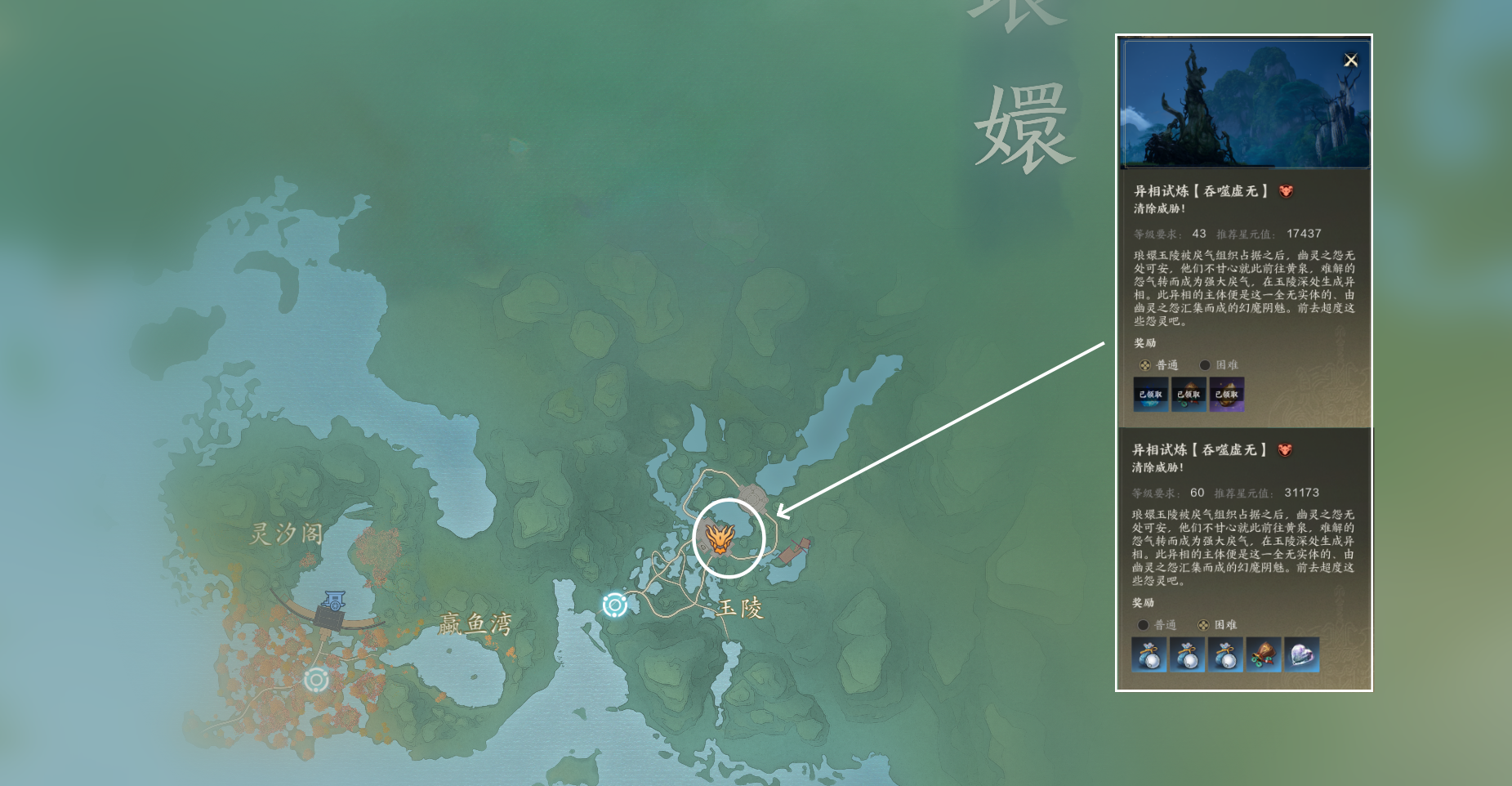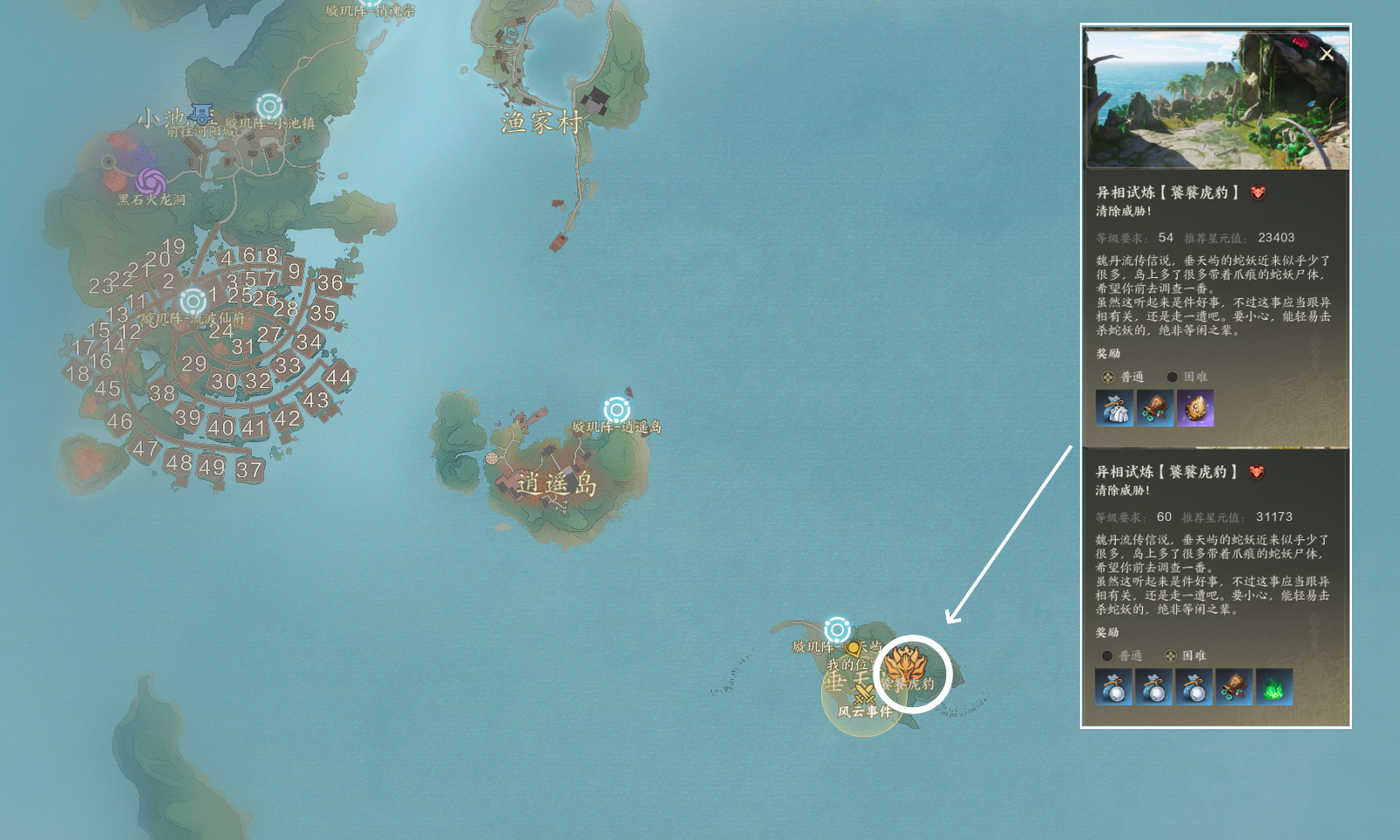 异相试炼玩法是角色一次性收益,按照等级挑战,进入副本后只有一个BOSS,不可以组队,通关奖励非常好,还有大量银两。60级之前如果我们挑战对应等级的普通异相副本吃力的话,可以等升级稍高一些再去挑战,60级以后的困难以及噩梦异相副本,就需要些手法操作了。这次主要是分享位置,如果大家需要的话,也可以给大家出一期所有异相副本的通关攻略。